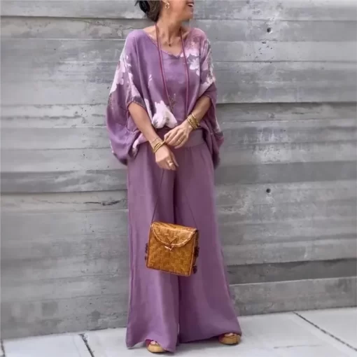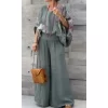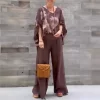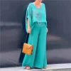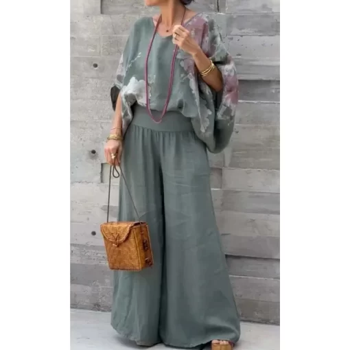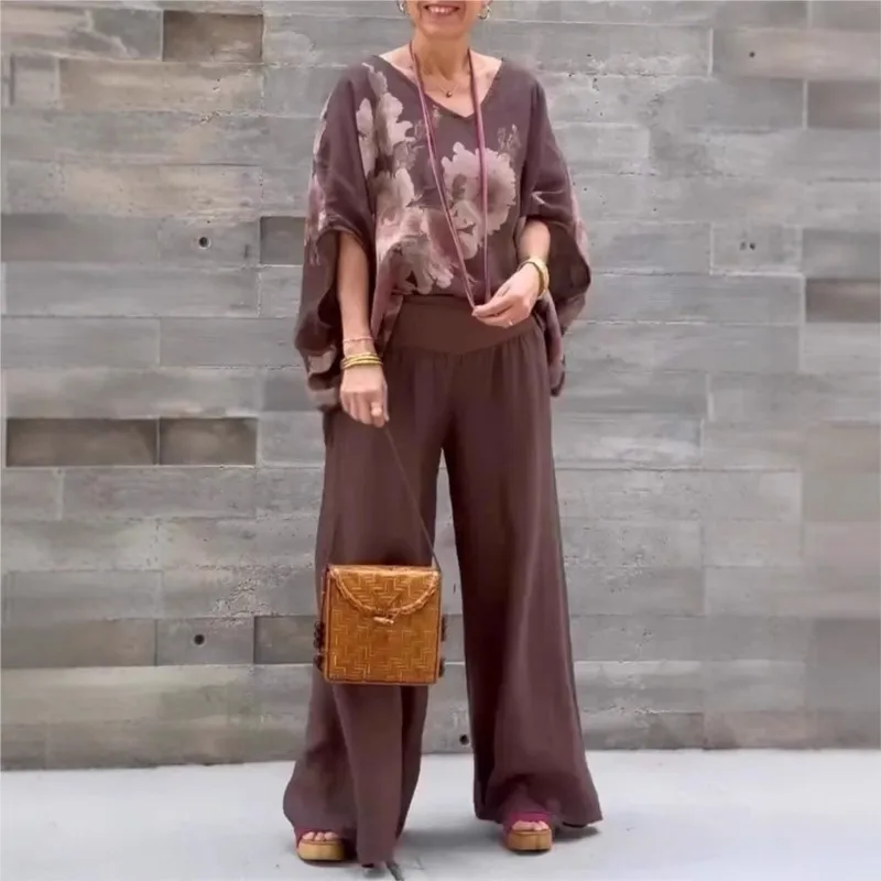 2025 Spring/Summer Elegant New Two-Piece Set Women’s V-neck Bat-sleeve Loose Top + Wide-Leg Pant Sets Office Ladies Casual Suits