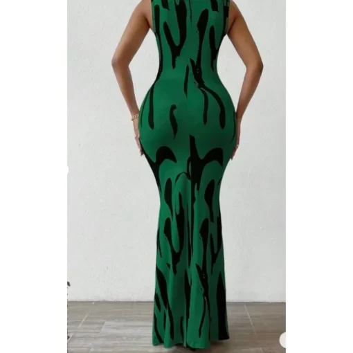 Women’s Sexy Bodycon Package Hip Long Dress Summer Pile Collar Print Sleeveless Slim Skinny Casual Party Maxi Dress Femme Robe